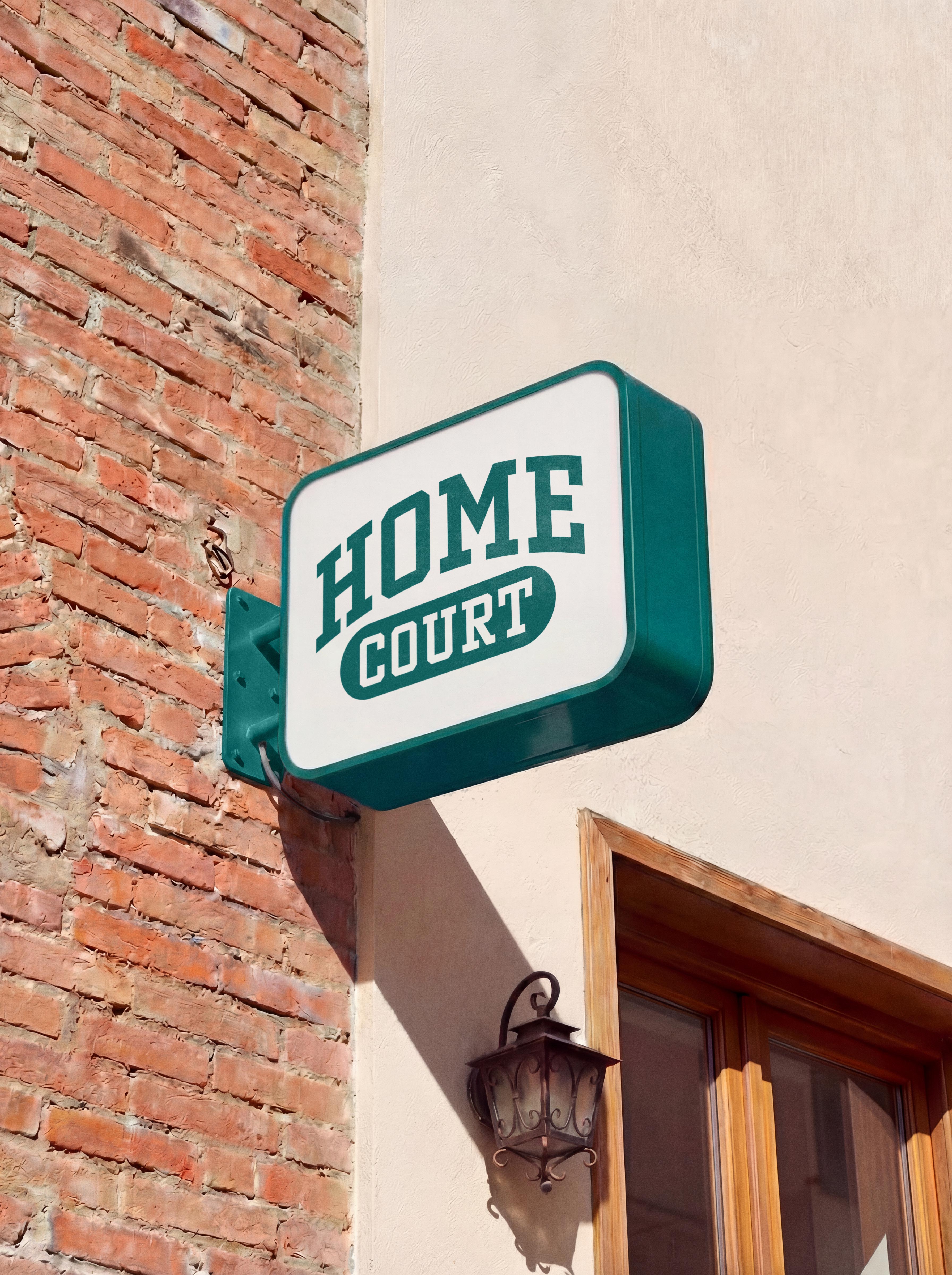 Inspired by vintage athletic typography and classic team graphics, the Homecourt wordmark takes cues from old-school sports sweaters, pennants, and club crests. The arched “Home” adds energy and movement, while the rounded container below creates weight and structure. Together, they give the mark a proud, nostalgic feel that reflects Homecourt’s focus on community, belonging, and timeless sport culture.
