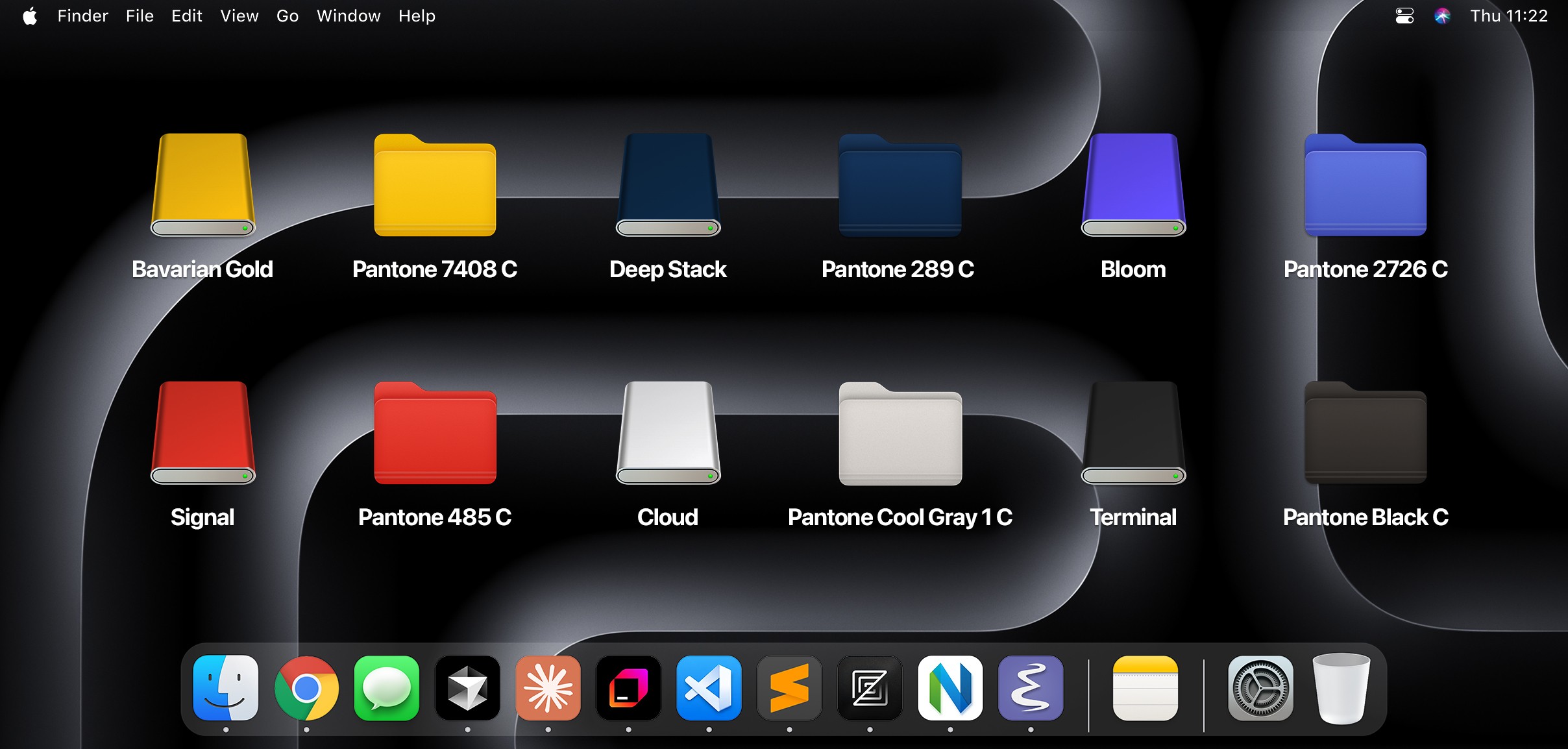 The colour palette follows that same thinking. Bavarian Gold leads as the primary tone, a bright and optimistic yellow inspired by the German flag. It’s supported by Deep Stack, a solid navy that adds depth and trust. Bloom brings a vibrant purplish-blue contrast, while Signal adds energy with a rich red tone that also nods to Patrick’s roots in Germany. Cloud and Terminal—an off-white and a rich black—help create space and structure. The names and tones reference both heritage and the coding environment, giving the system a strong and distinct personality.