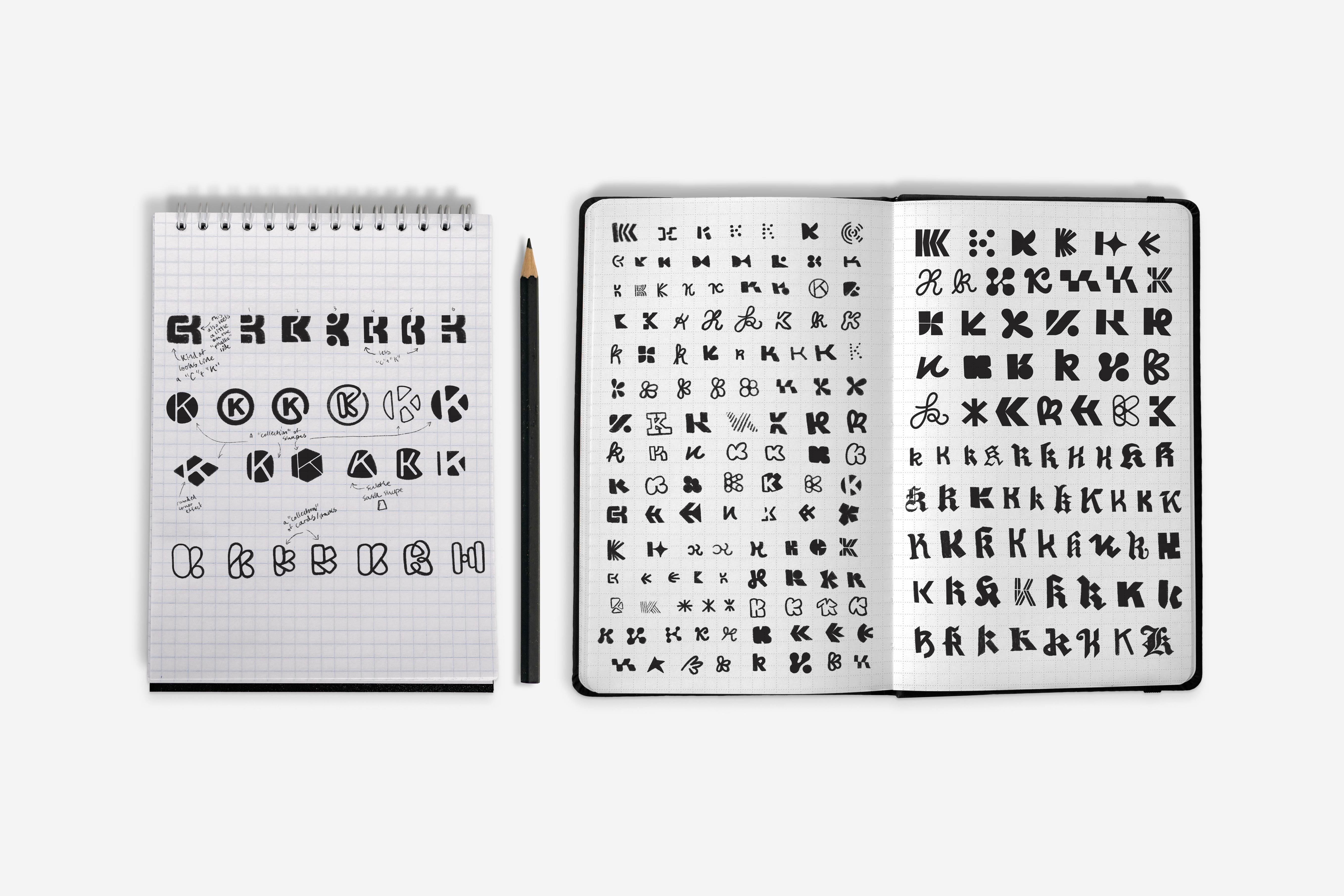 I began by sketching a variety of abstract “K” symbols, since he knew from the start that he wanted the logo to center around that form. Some directions pulled inspiration from blackletter styles, giving the mark a slightly German, almost medieval feel, reminiscent of Oktoberfest. But ultimately, something more rounded and approachable felt like a better fit for a contemporary software company. While he had been using a placeholder logo, the goal was to create something entirely new: a distinctive mark that stood on its own without drawing from what came before.